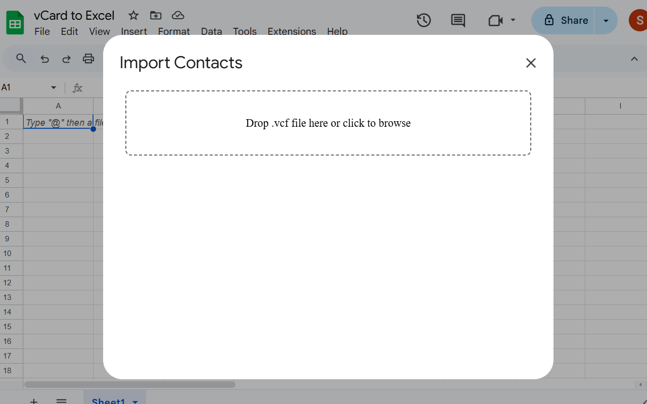 The add-on will extract contacts from VCF file and will add a new sheet in Google Sheets.
